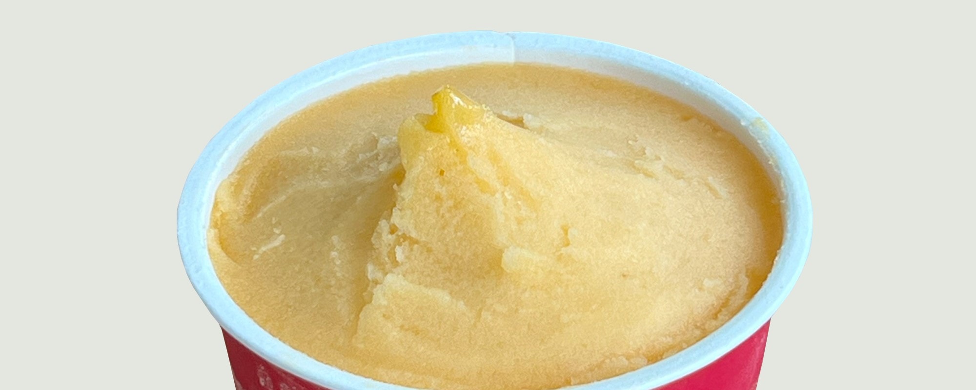 鮮やかなオレンジ色の優しい甘みと香りのあんずのシャーベットです。